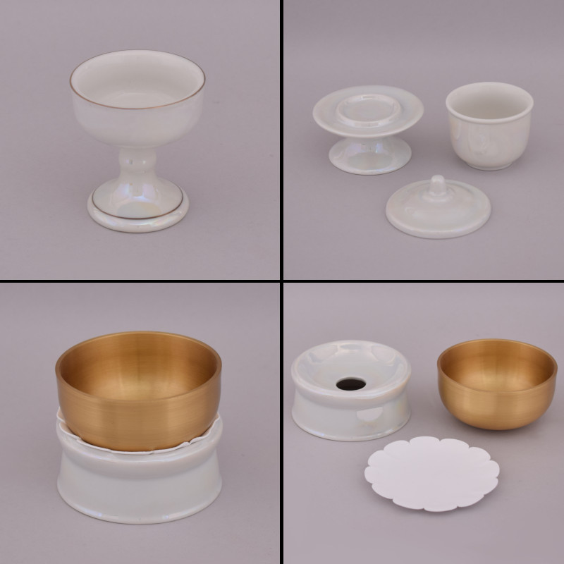 陶器仏具セット奉仕用 パール (陶器鶴丸徳利付)